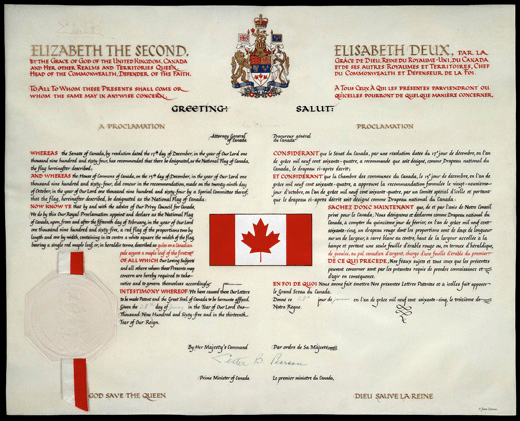 The Proclamation of the Canadian Flag, 1965. © Library and Archives Canada, Acc. No. 1989-253-1